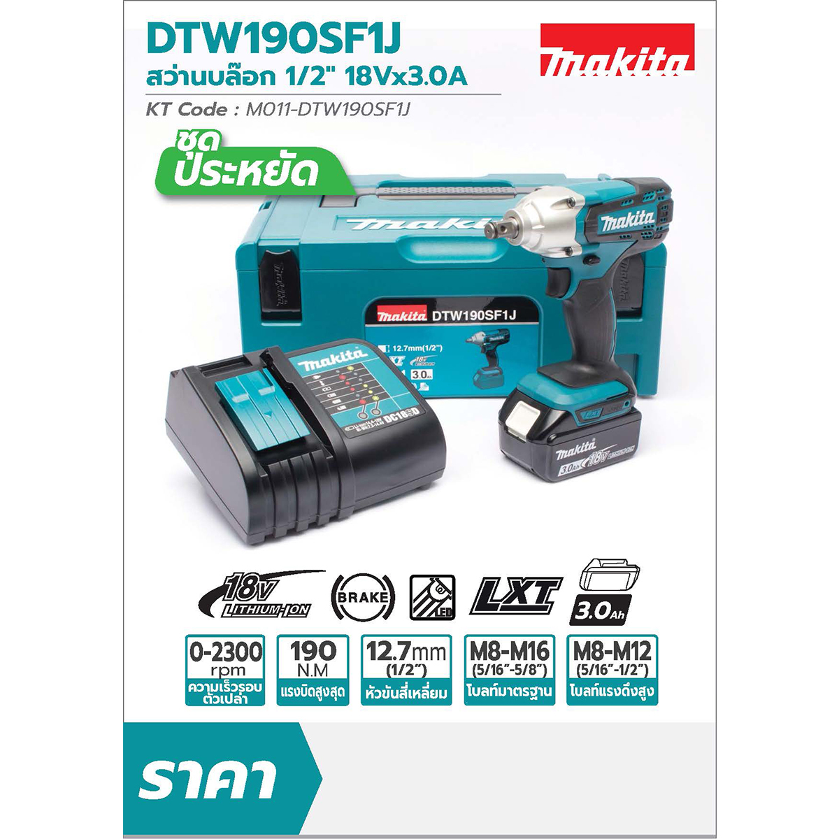 เครื่องขันบล๊อกไร้สาย 18 โวลต์ MAKITA รุ่น DTW190SF1J
