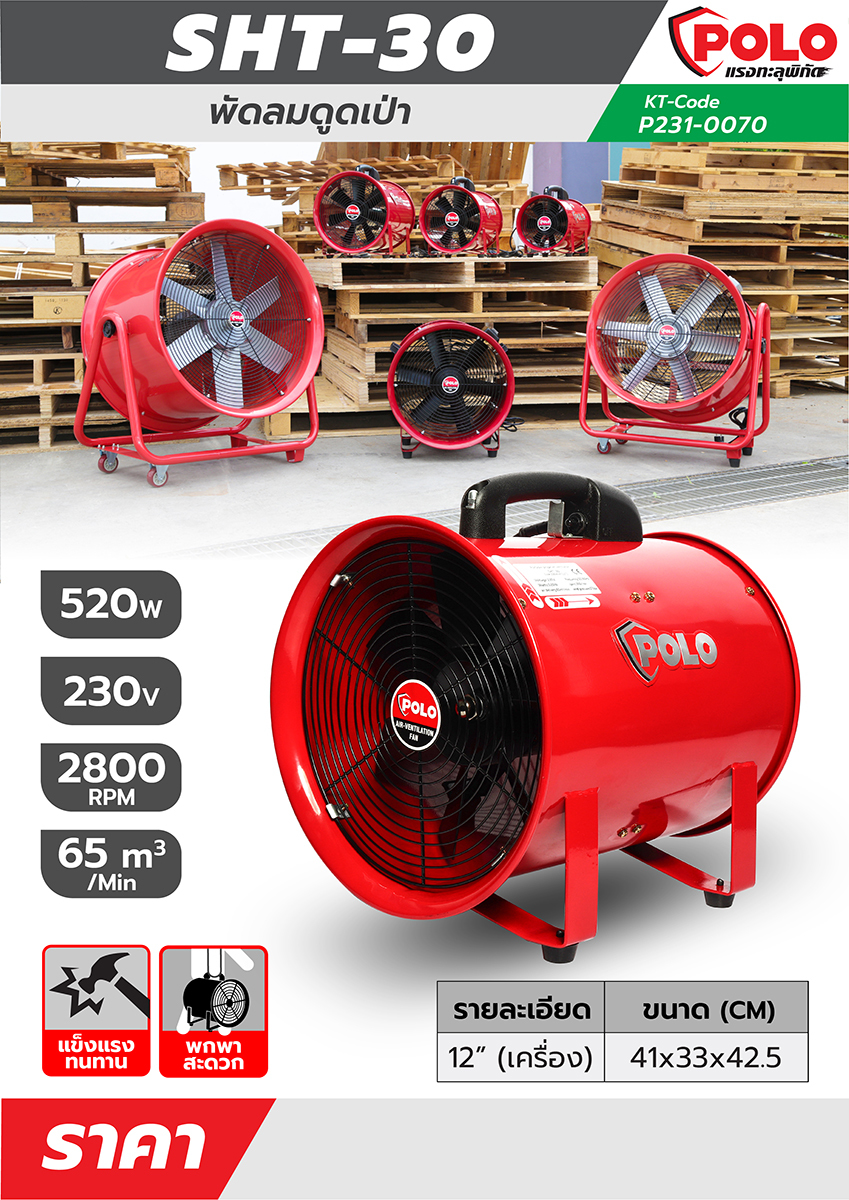 พัดลมอุตฯ ดูดเป่า POLO รุ่น SHT-30 ขนาด 12 นิ้ว