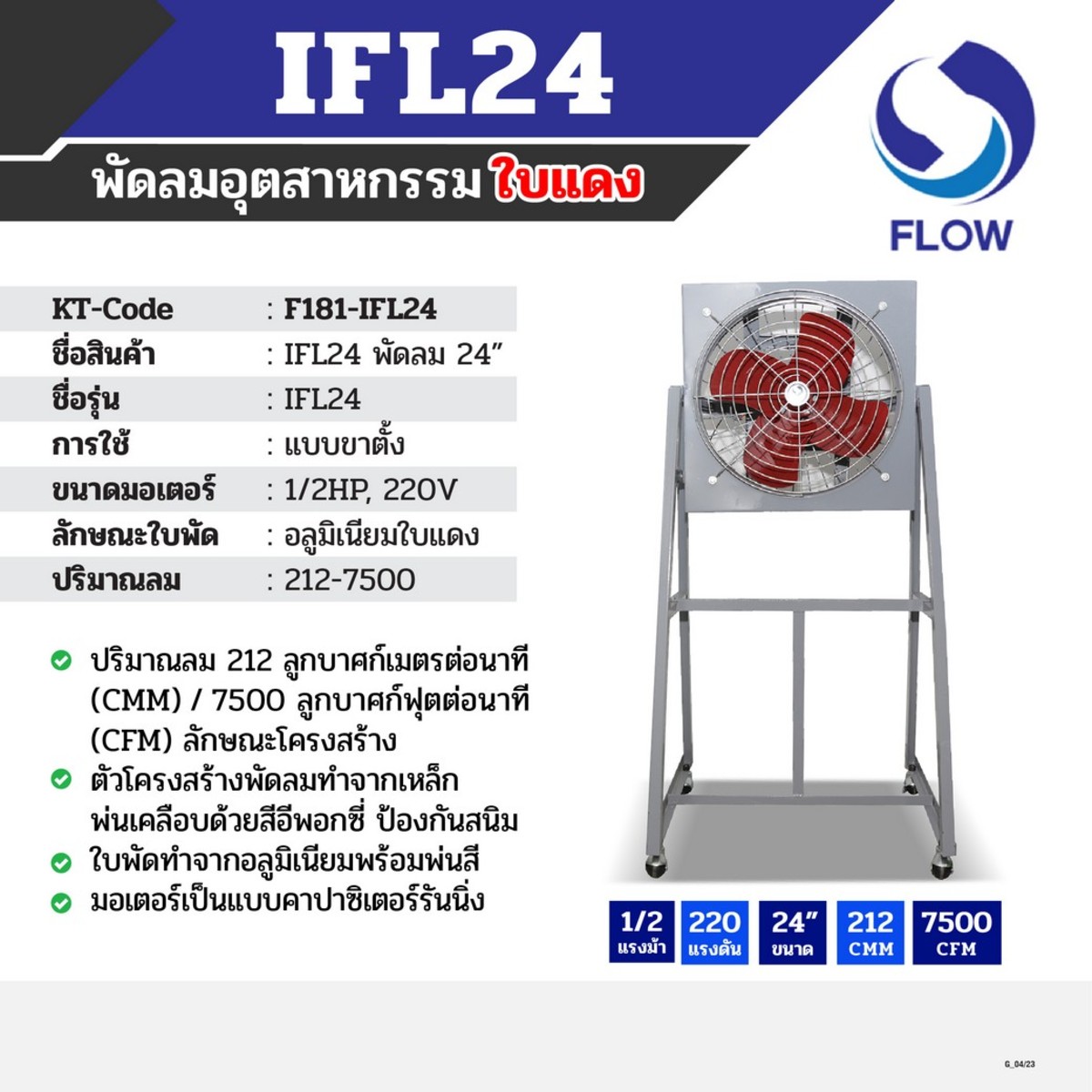พัดลมอุตสาหกรรมใบแดง แบบขาตั้ง FLOW รุ่น IFL24 ขนาด 24 นิ้ว