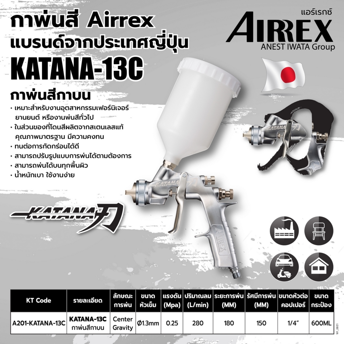 กาพ่นสี กาบน แบบถ้วยข้าง AIRREX รุ่น KATANA-13G