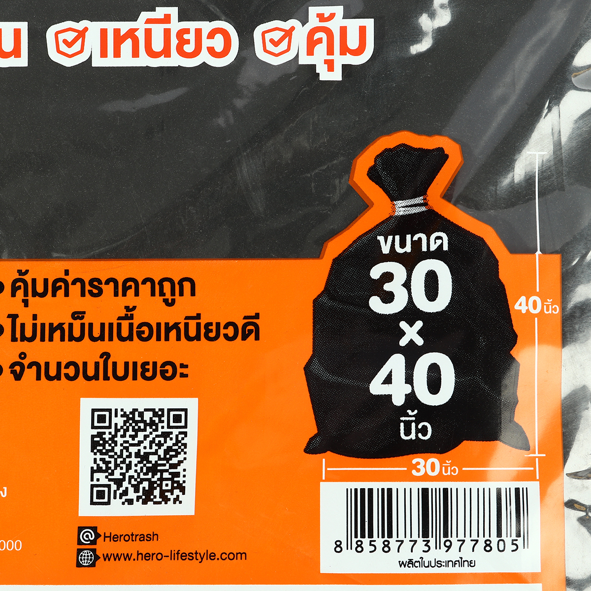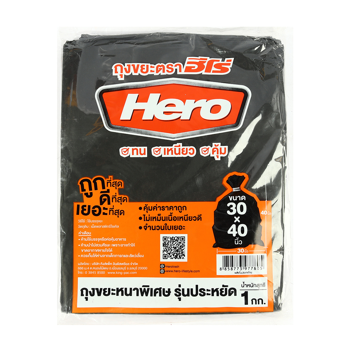 ถุงขยะ HERO (ฮีโร่) รุ่นประหยัด 1 กิโลกรัม แบบหนา ขนาด 30X40 นิ้ว หนา 53 ไมครอน (0.053 มม.) รับน้ำหนักได้มาก ประหยัด คุ้มค่า