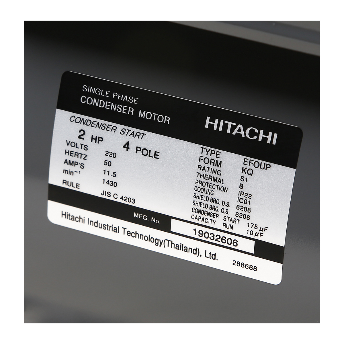 มอเตอร์ HITACHI รุ่น EFOUP-KQ กำลัง 2 แรงม้า (1.5 กิโลวัตต์) 1 เฟส 220 โวลต์ 4 โพล 2 สาย IP22