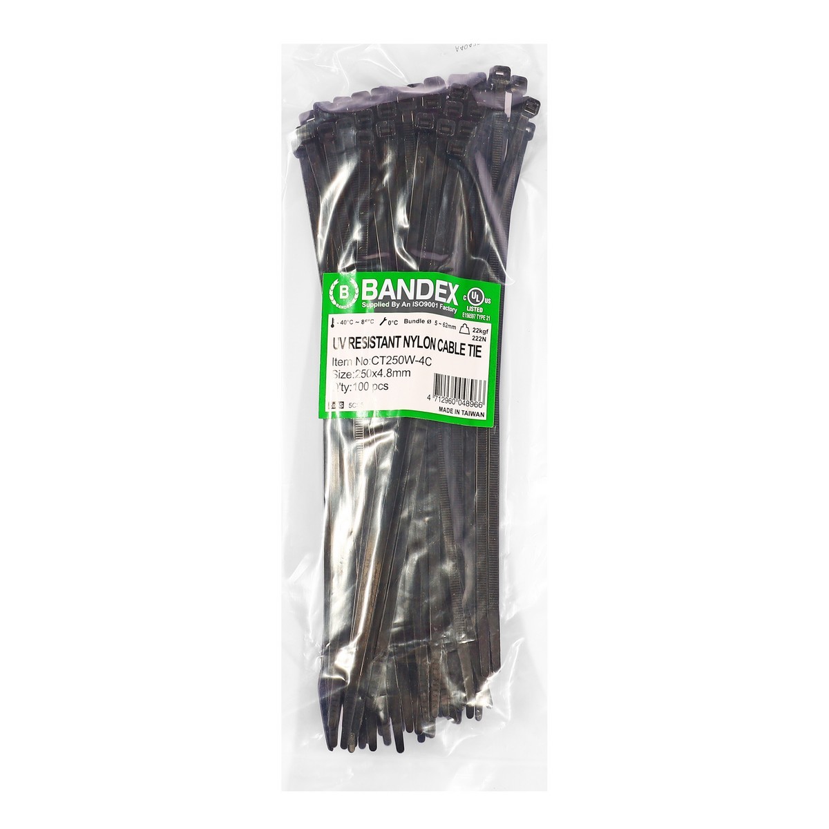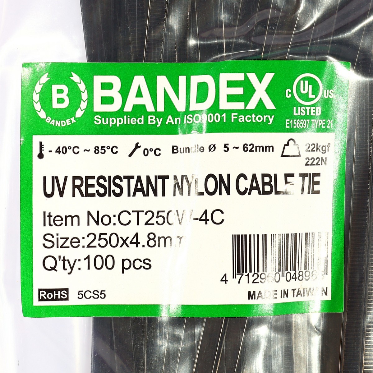 BANDEX เคเบิ้ลไทร์กันยูวี UV สีดำ ขนาด 10 นิ้ว รุ่น CT-250W-4C สายรัดจับเก็บอเนกประสงค์ บรรจุ 100 เส้น/แพ็ค (แบนเด็กซ์)