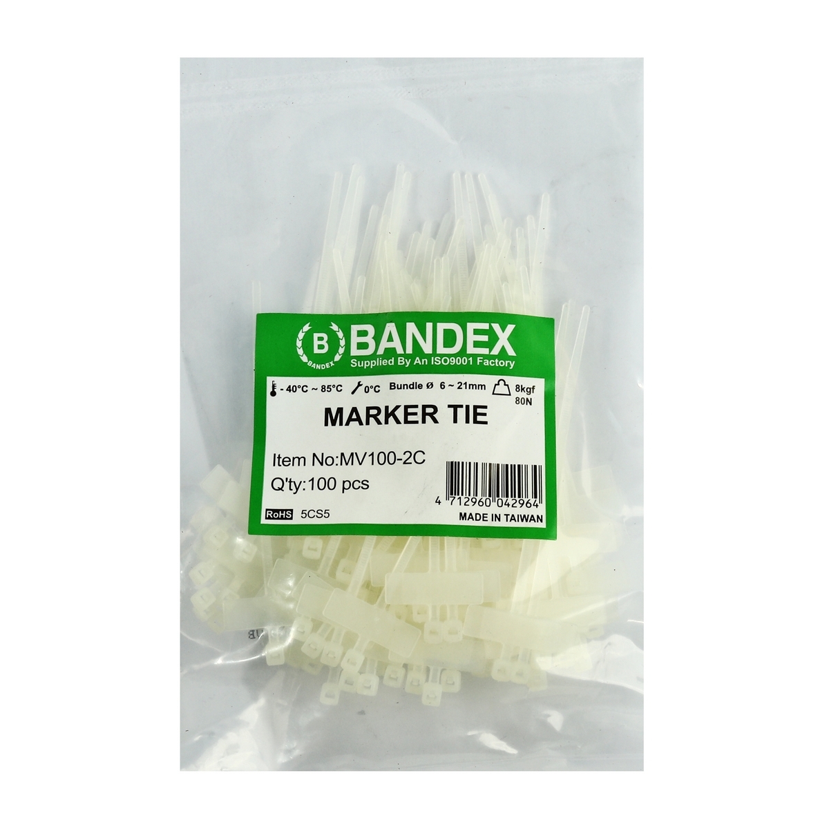 BANDEX (เบนเด็กซ์) เคเบิ้ลไทร์แบบมีป้ายเขียน 4 นิ้ว (100 มม.) สีขาว รุ่น MV-100-2C ผลิตจากไต้หวัน (100 ชิ้น/แพ็ค)