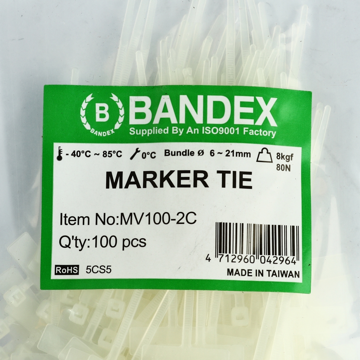BANDEX (เบนเด็กซ์) เคเบิ้ลไทร์แบบมีป้ายเขียน 4 นิ้ว (100 มม.) สีขาว รุ่น MV-100-2C ผลิตจากไต้หวัน (1