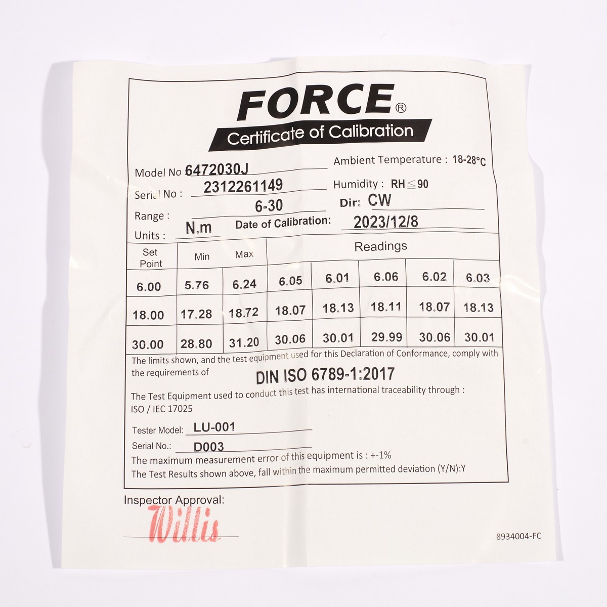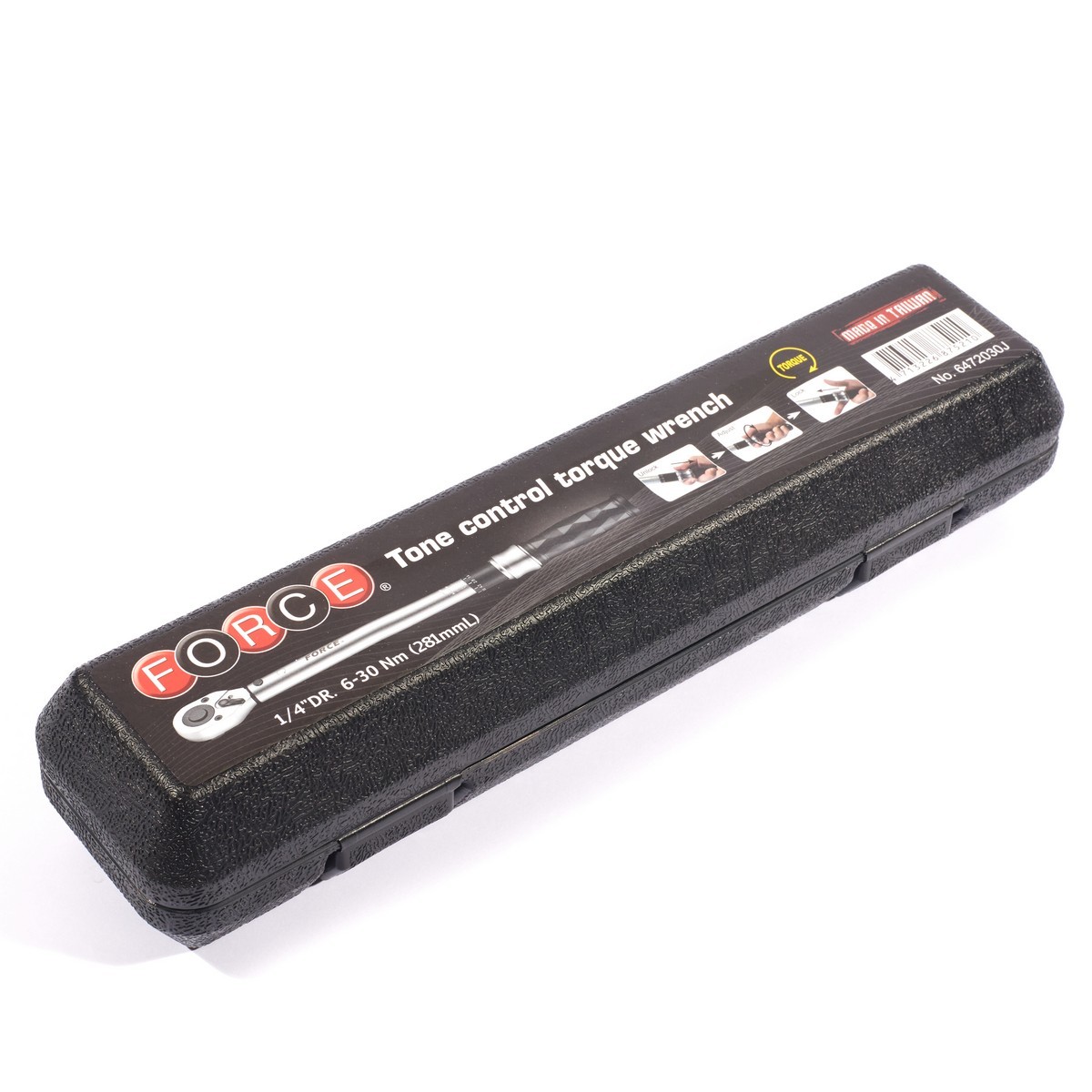 FORCE ประแจปอนด์ชนิดมีเสียง ขนาด 1/4 นิ้ว ยาว 1010 มม. รุ่น 6472030J แรงบิด 6-30 นิวตันเมตร ด้ามดำ มีใบรับรองการตั้งค่ามาในชุด