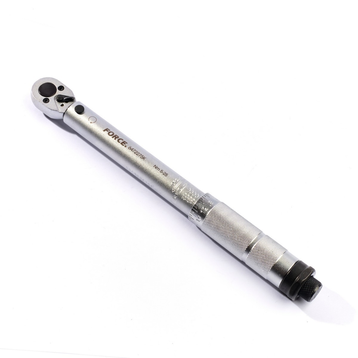 FORCE ประแจปอนด์ ขนาด 1/4 นิ้ว รุ่น 6472275K แรงบิด 5-25 นิวตันเมตร ชนิดมีเสียง ความแม่นยำ + - 4% มีใบรับรองการตั้งค่ามาในชุด