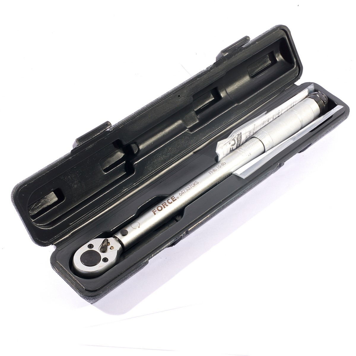 FORCE ประแจปอนด์ ขนาด 3/8 นิ้ว รุ่น 6473370KS แรงบิด 15-80 ฟุต-ปอนด์ ชนิดมีเสียง ความแม่นยำ + - 4% มีใบรับรองการตั้งค่ามาในชุด