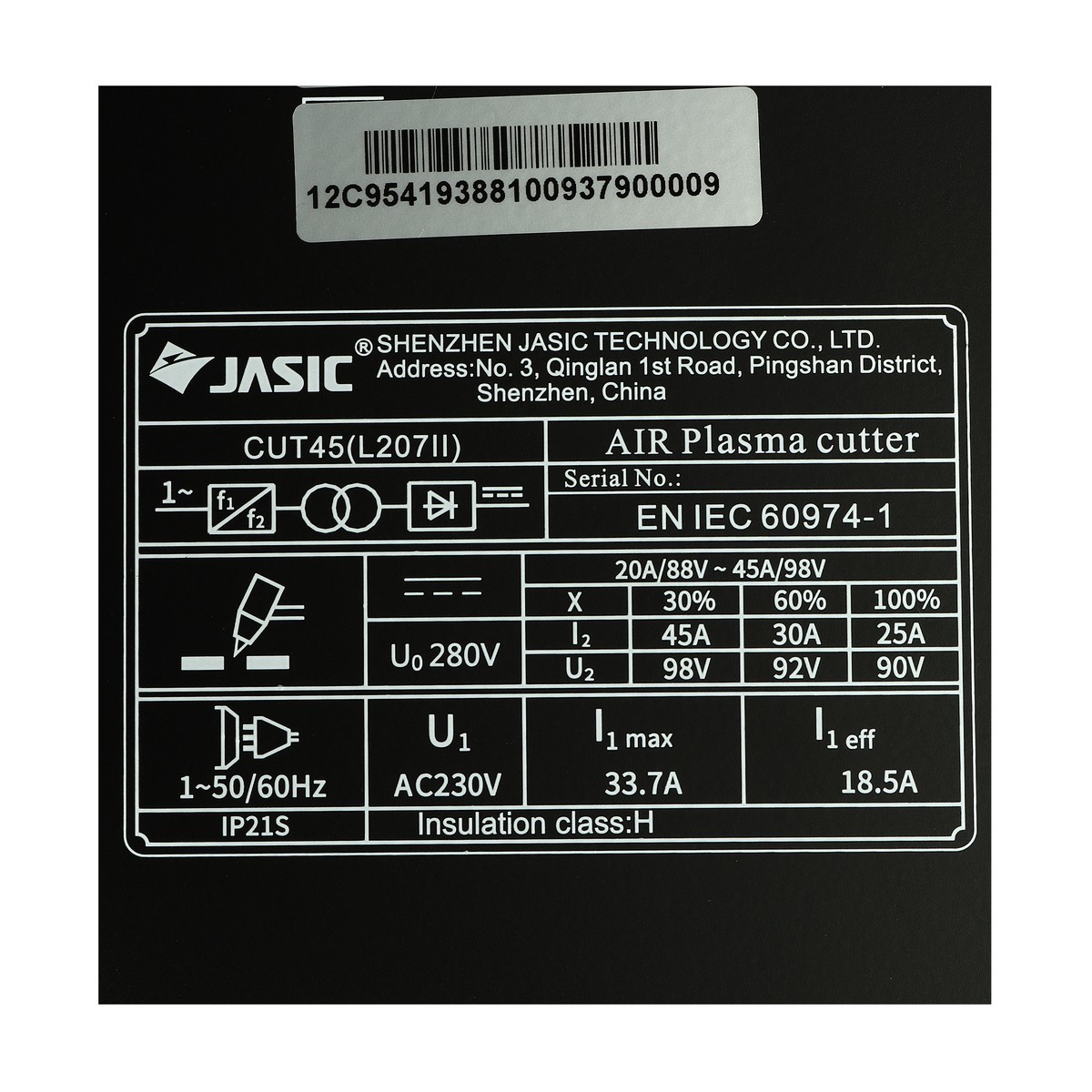 JASIC (เจสิค) เครื่องตัดพลาสม่า รุ่น CUT45L207II แรงดันไฟ 1 เฟส 220 โวลต์ ความหนาในการตัดสูงสุด 15 ม