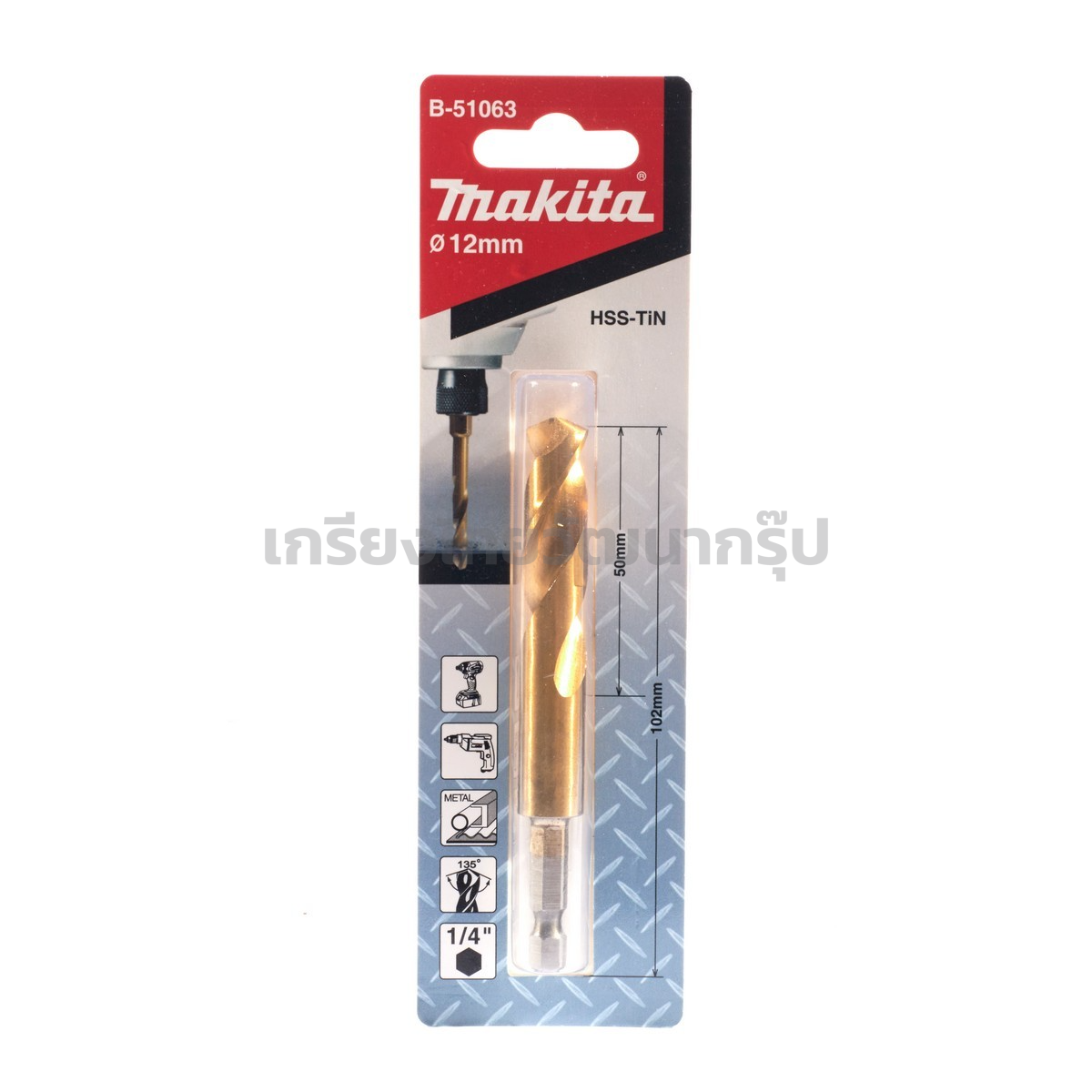 MAKITA ดอกเจาะเหล็กก้านหกเหลี่ยม 12 มม. รุ่น B-51063 ความยาว 102 มม. ความยาวในการใช้งาน 50 มม. ขนาดก้าน 1/4 นิ้ว (มากีต้า)