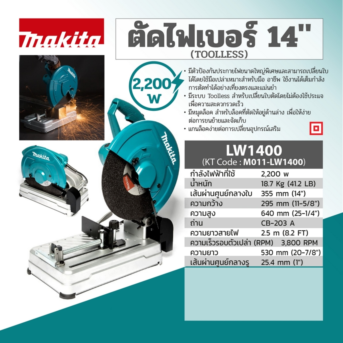 MAKITA เครื่องตัดไฟเบอร์ไฟฟ้า รุ่น LW1400 ขนาด 14 นิ้ว (355 มม.) กำลังไฟ 2,200 วัตต์