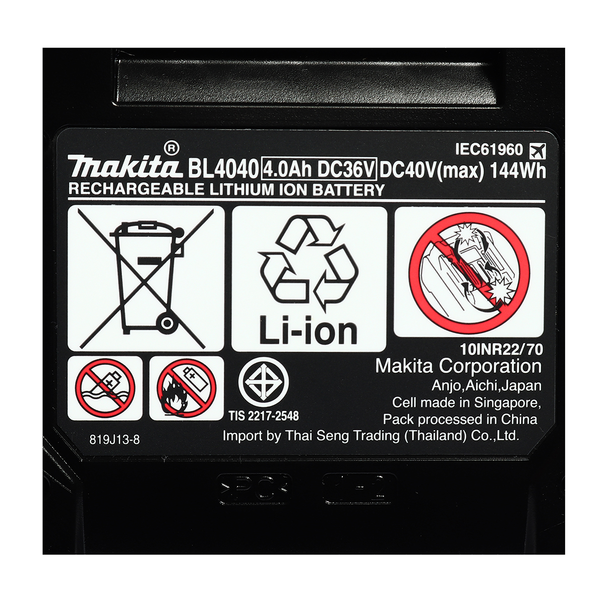 แบตเตอรี่ ลิเธียมไอออน 40 โวลต์ MAKITA รุ่น BL4040 ความจุ 4.0 แอมป์