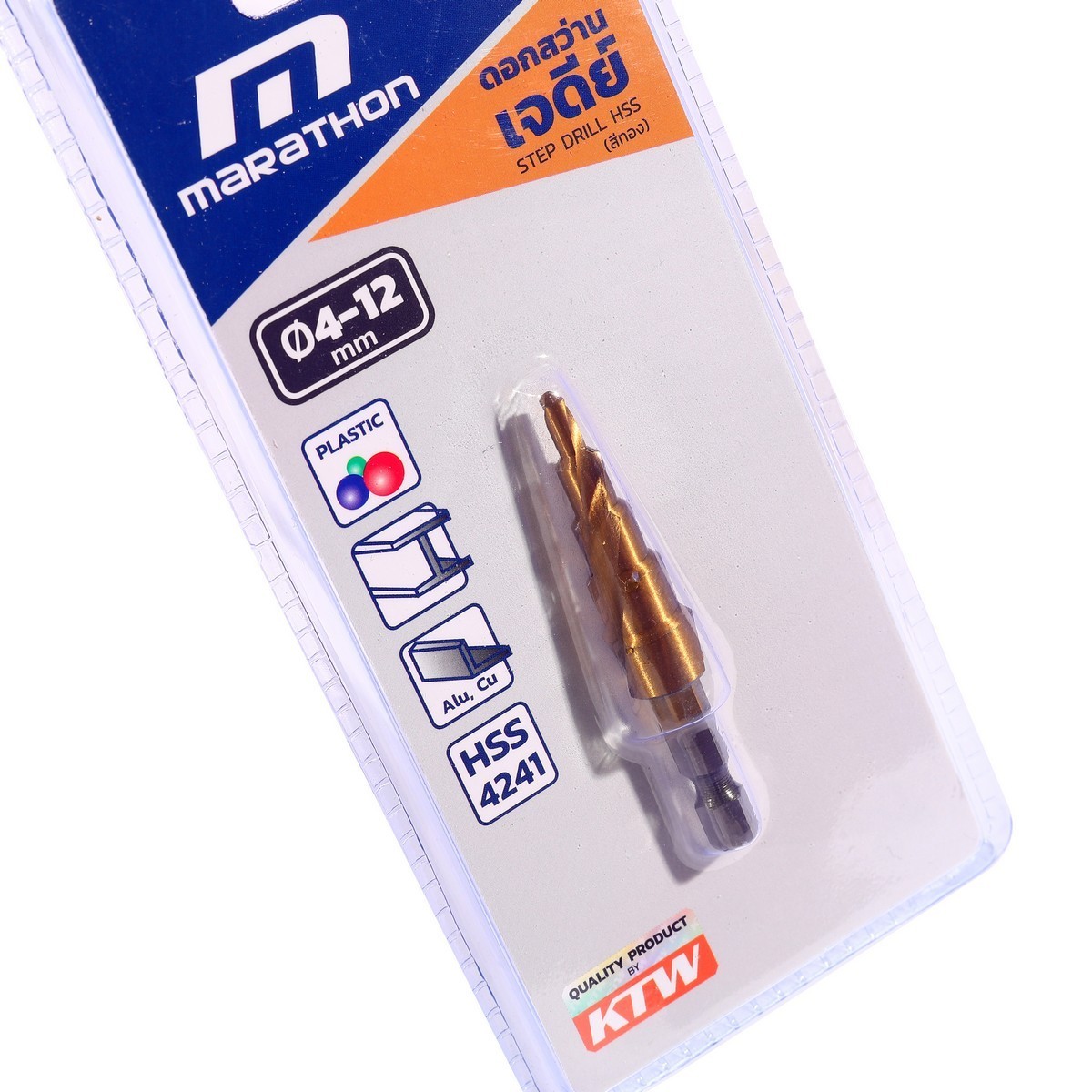 MARATHON ดอกสว่านเจดีย์สีทอง ขนาด 4 - 12 มม. แกน 6.35 มม. ใช้เจาะชิ้นงานโดยไม่ต้องเจาะนำด้วยสว่านดอก