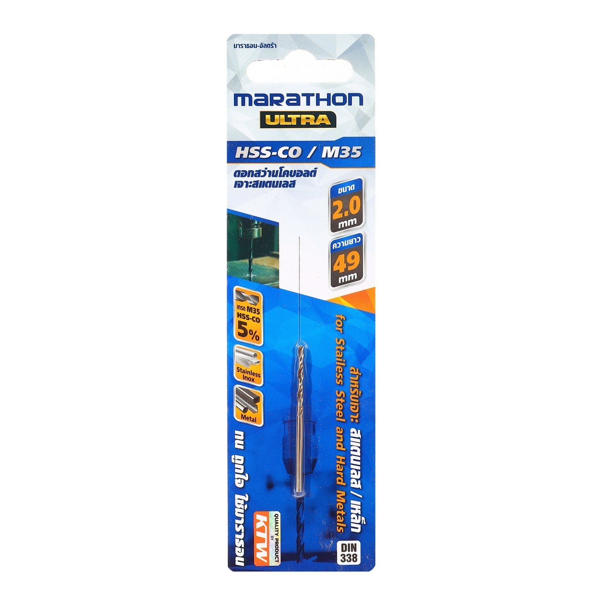 MARATHON ดอกสว่านโคบอลต์ ขนาด 2.0 มม. ยาว 49 มม. เกรด HSS-CO 5% / M35 สำหรับเจาะเหล็กและสแตนเลส (มาราธอน)