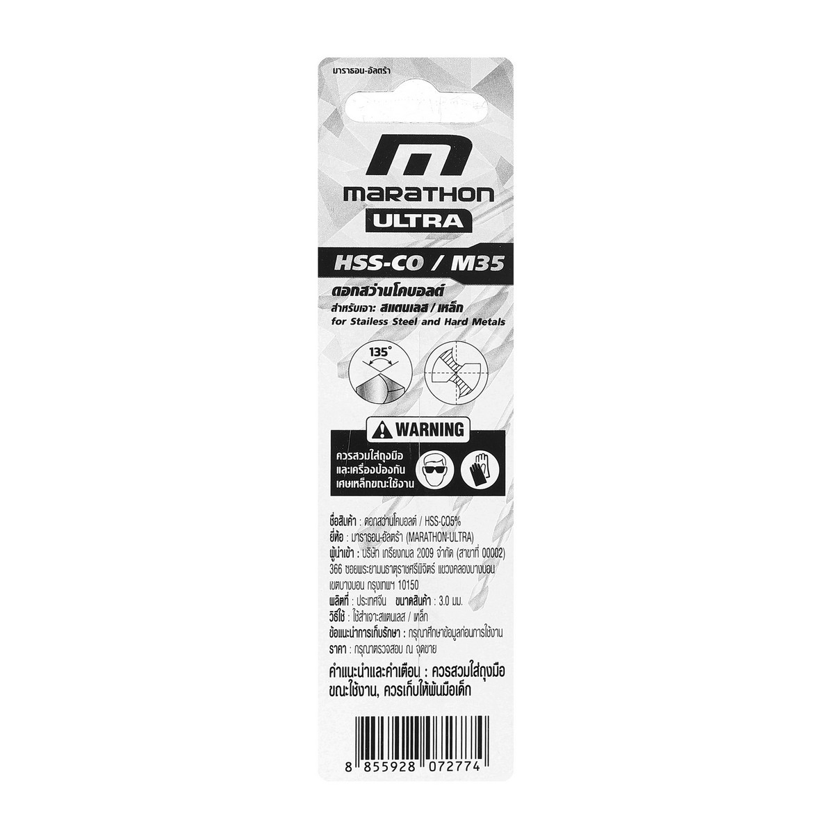 MARATHON ดอกสว่านโคบอลต์ ขนาด 3.0 มม. ยาว 61 มม. เกรด HSS-CO 5% / M35 สำหรับเจาะเหล็กและสแตนเลส (มาราธอน)