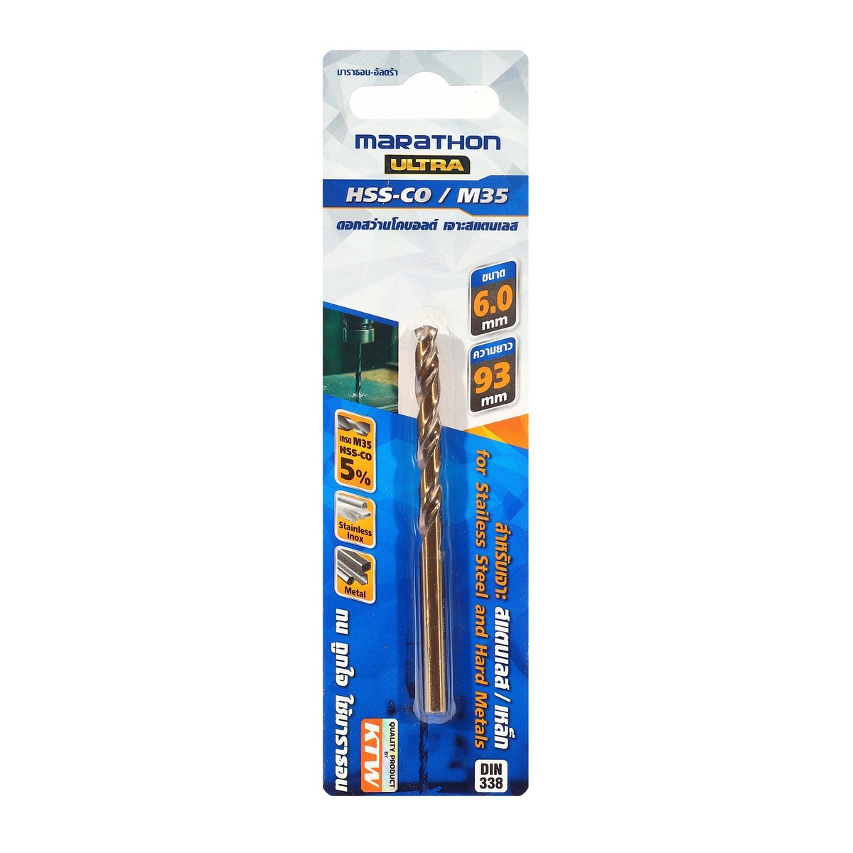 MARATHON ดอกสว่านโคบอลต์ ขนาด 6.0 มม. ยาว 93 มม. เกรด HSS-CO 5% / M35 สำหรับเจาะเหล็กและสแตนเลส (มาร