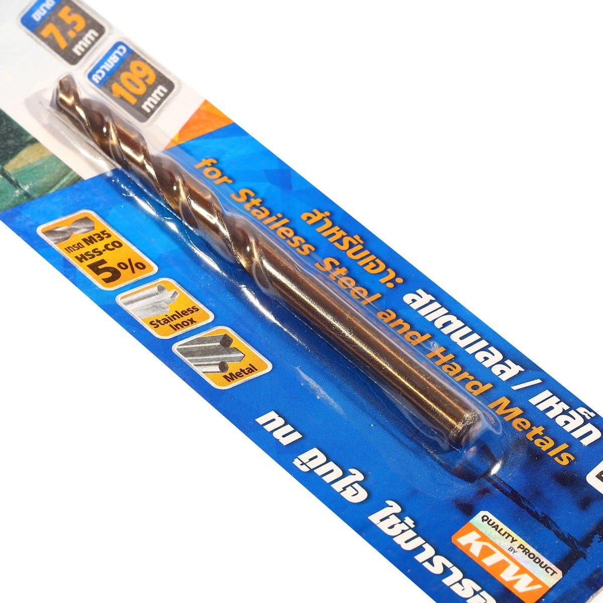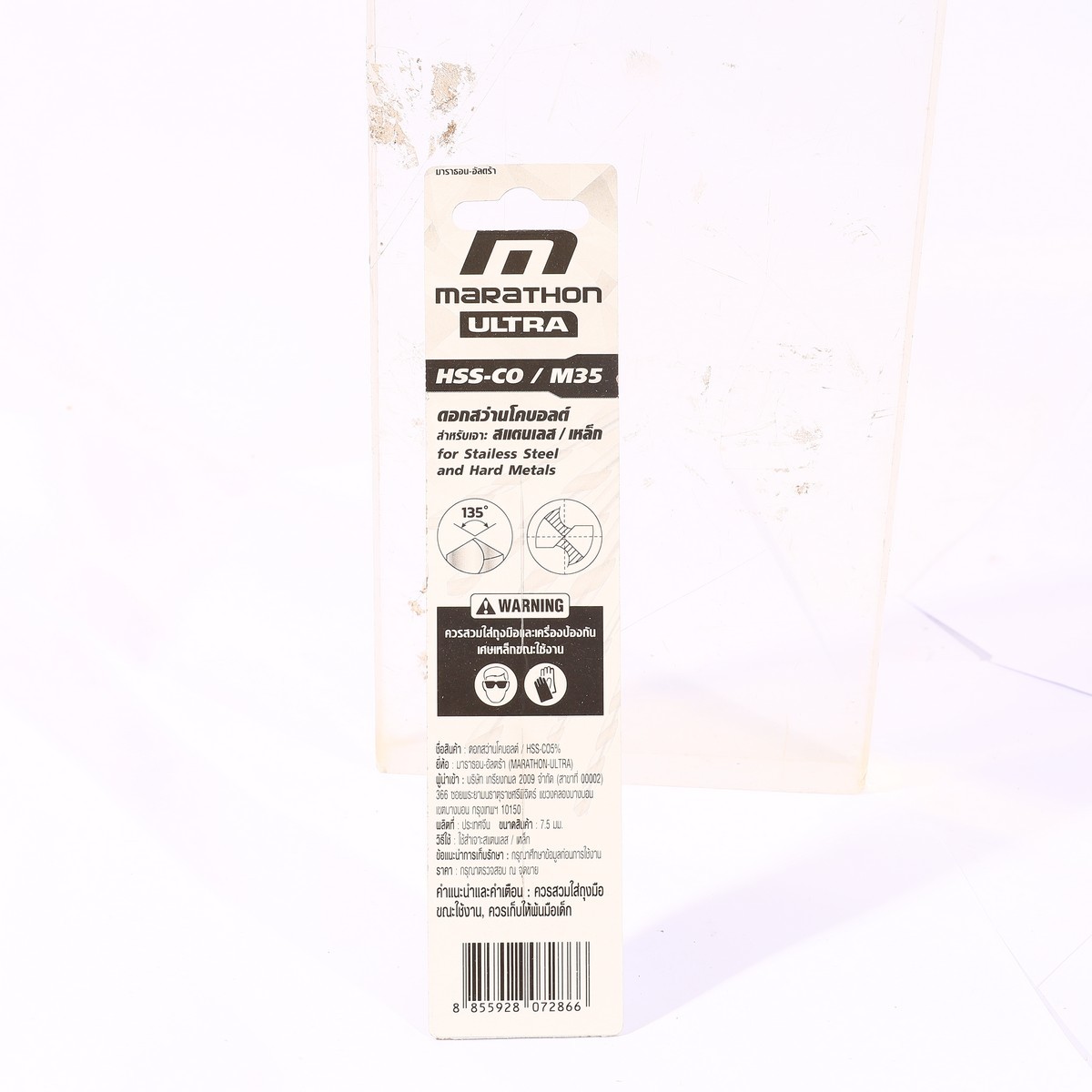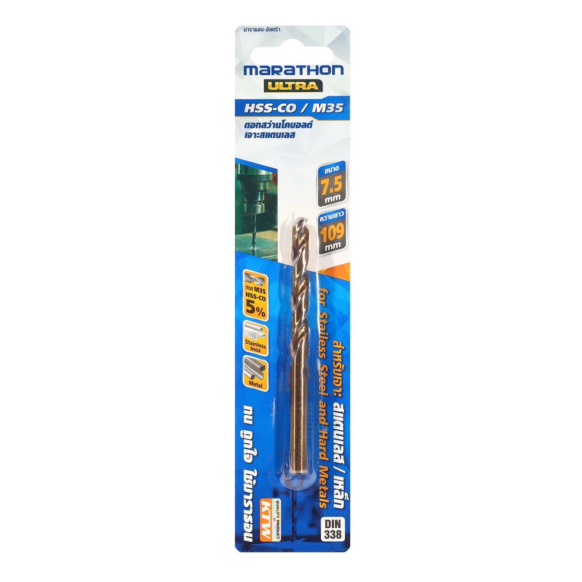 MARATHON ดอกสว่านโคบอลต์ ขนาด 7.5 มม. ยาว 109 มม. เกรด HSS-CO 5% / M35 สำหรับเจาะเหล็กและสแตนเลส (มา
