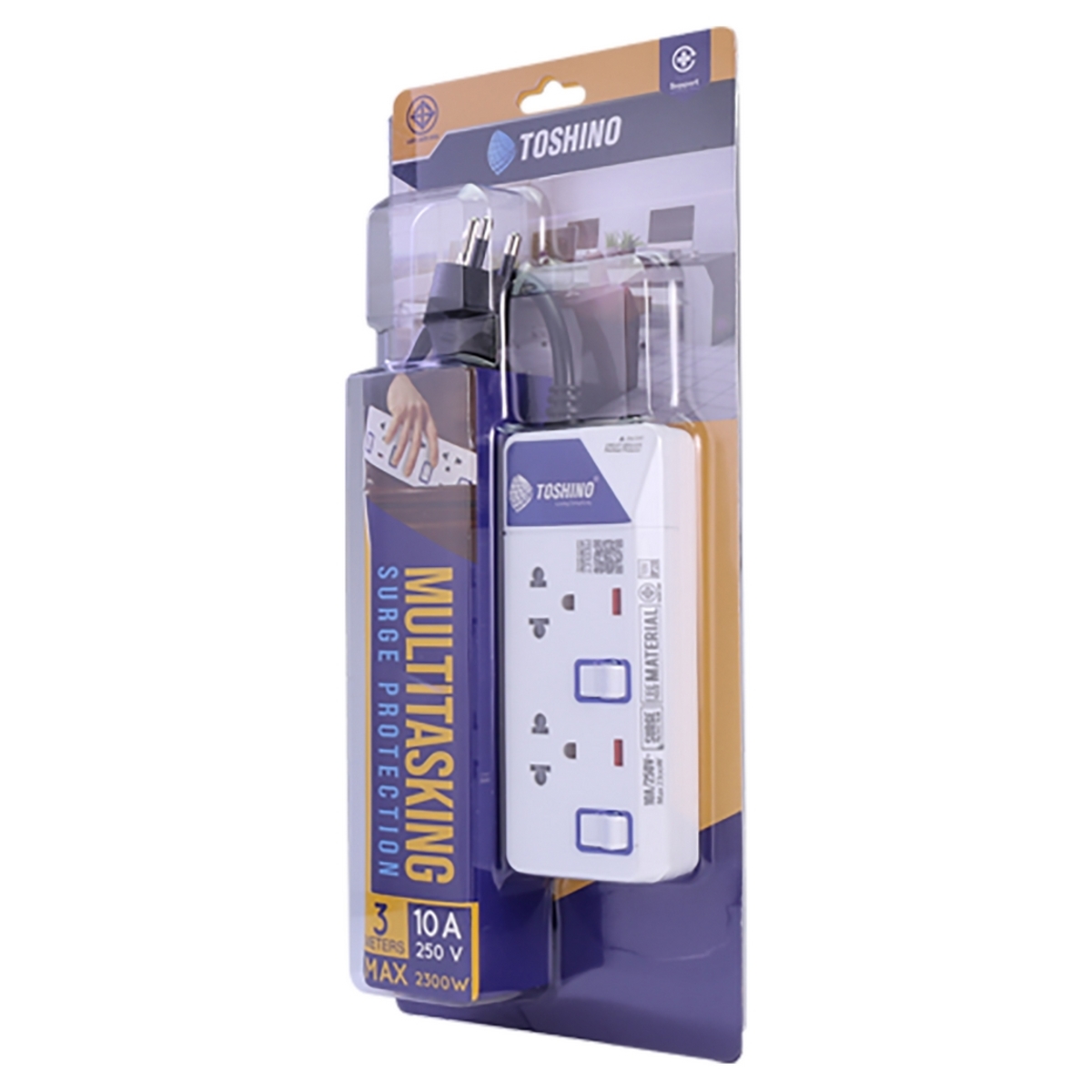 รางปลั๊กไฟ TOSHINO ปลั๊กพ่วง 2 สวิตช์ 2 ช่อง สายไฟยาว 3 เมตร รุ่น ET-912