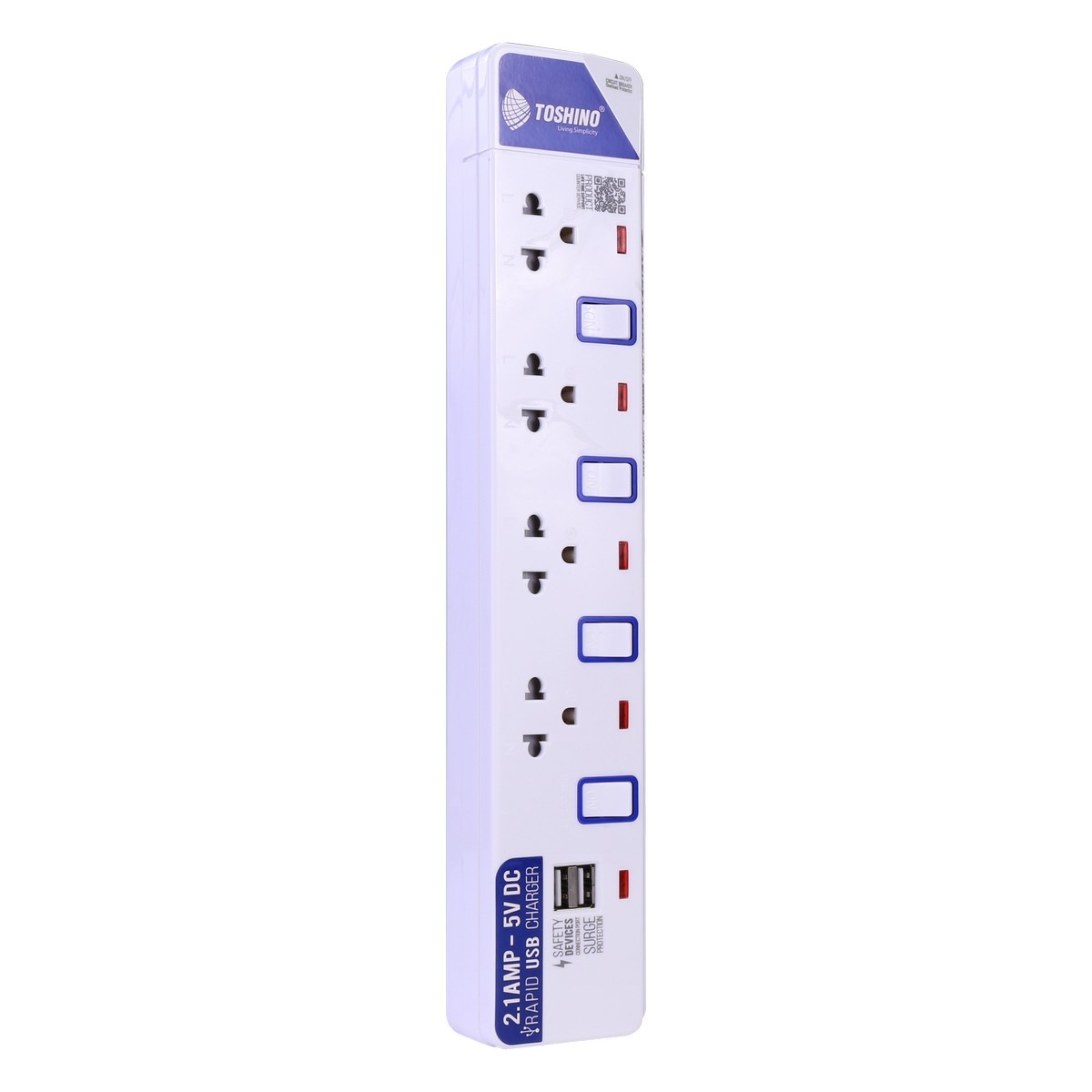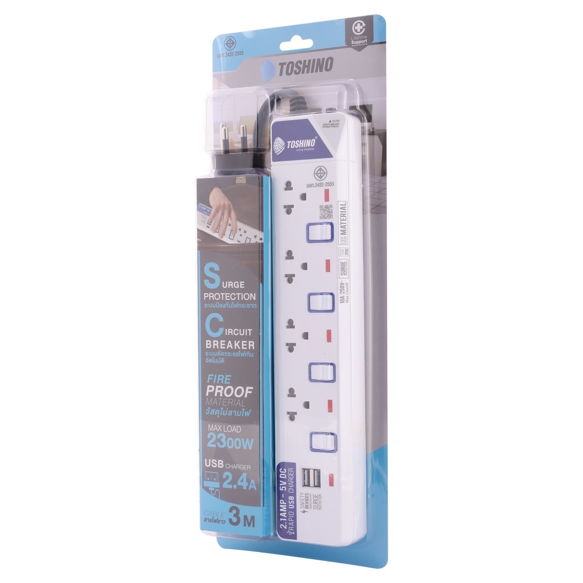"รางปลั๊กไฟ TOSHINO ปลั๊กพ่วง 4 ช่อง 4 สวิตซ์ 2 USB ยาว 3 เมตร รุ่น