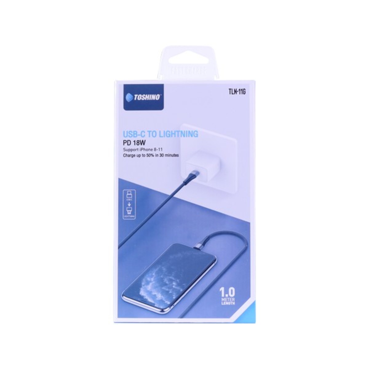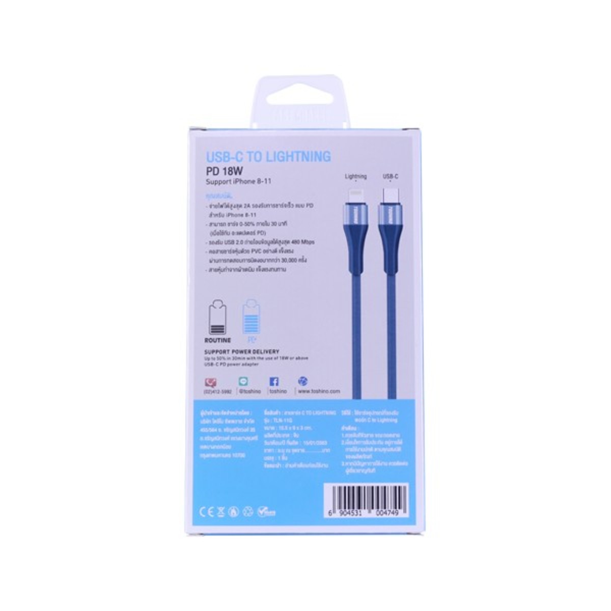 TOSHINO สายชาร์จ C To Lightning รุ่น TLN-11G สีเทา จ่ายไฟได้สูงสุด 2A รองรับการชาร์จเร็ว แบบ PD สำหร